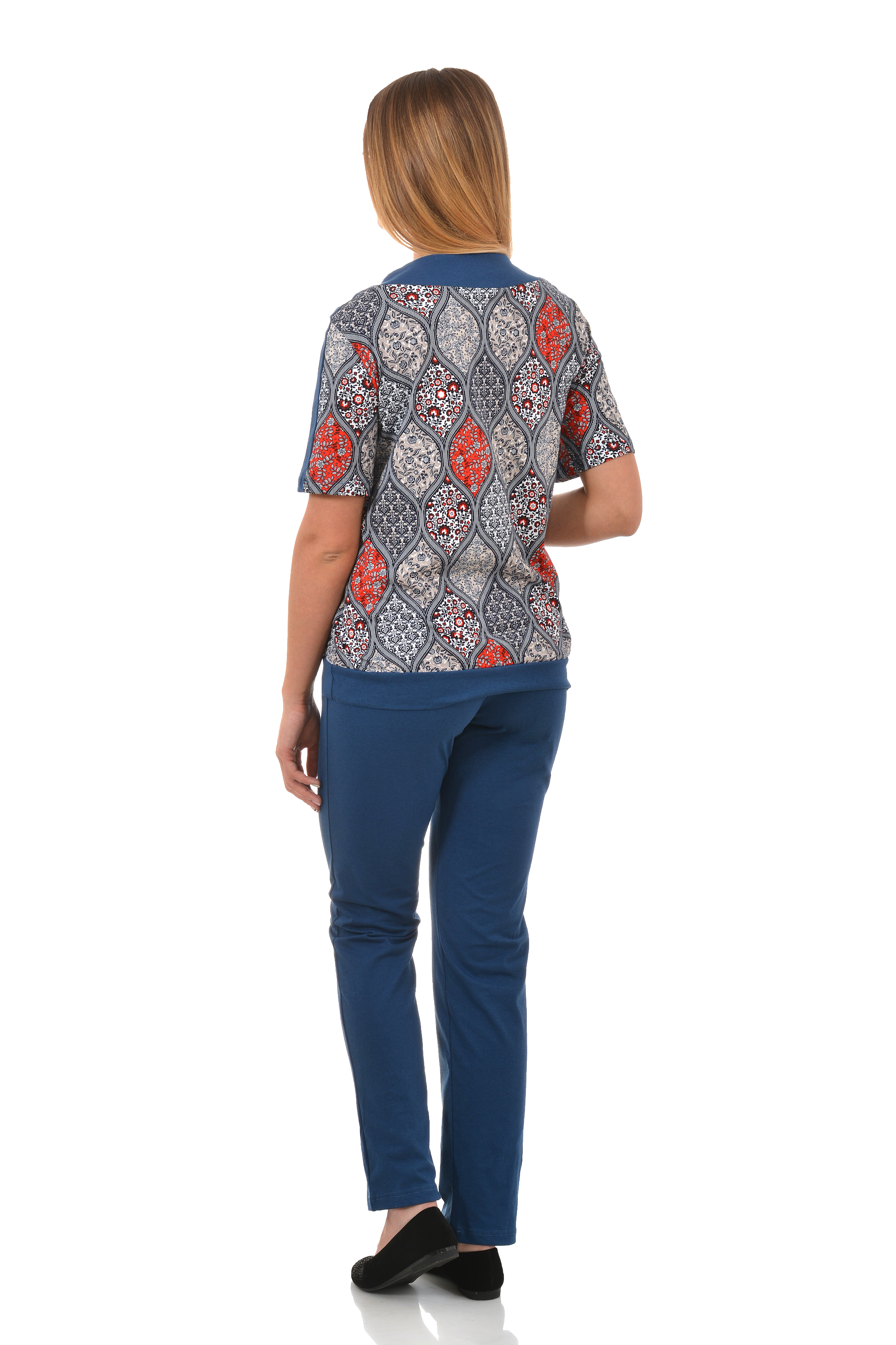 Современный брючный костюм из мягкого гладкокрашеного хлопкового трикотажа.