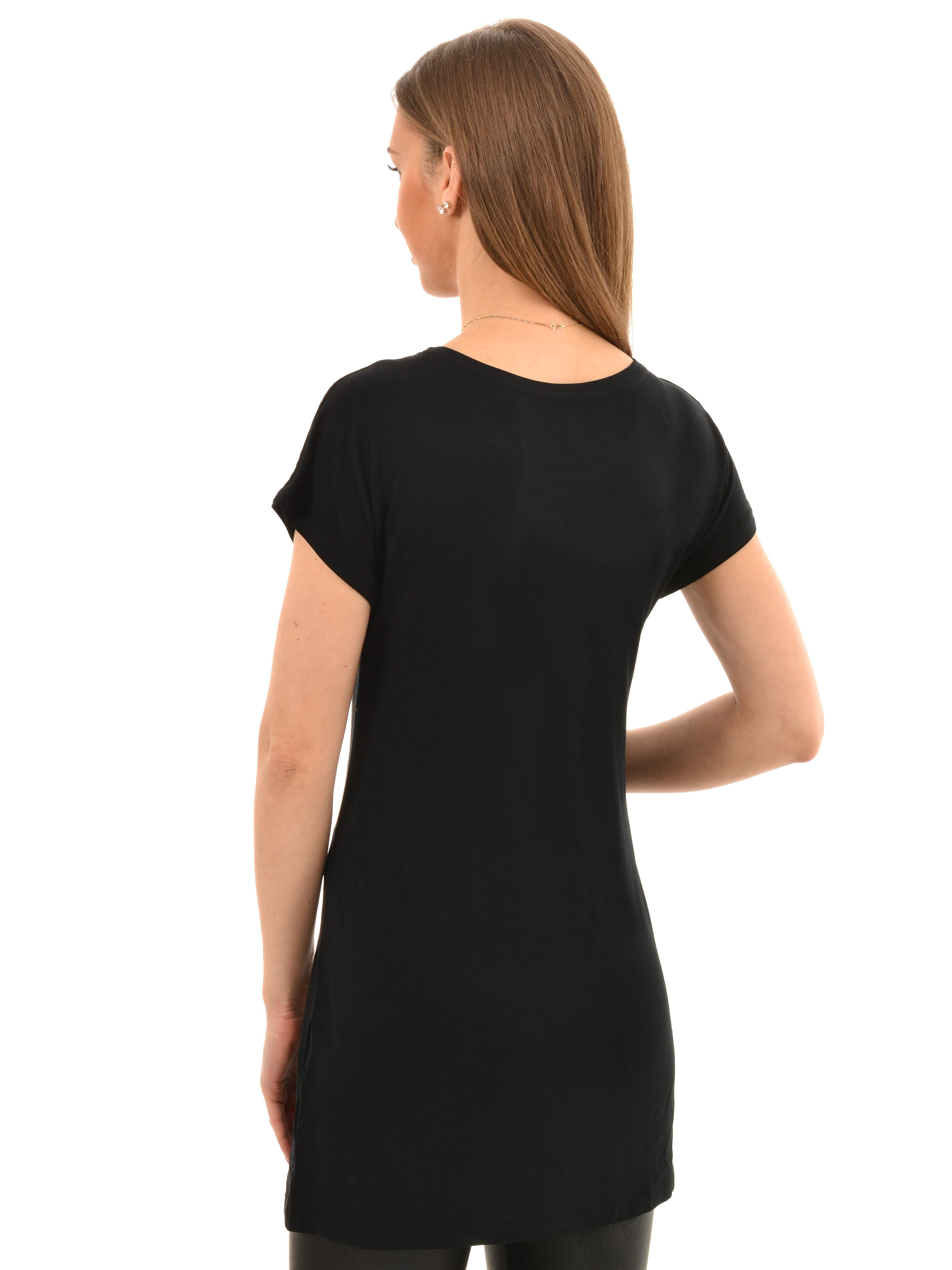 Стильная туника с золотистым рисунком подчеркнет вашу женственность и добавит изюминку в повседневный образ. Круглый вырез горловины, короткий рукав, прямой покрой. Туника идеально сочетается с джинсами, брюками и некоторыми юбками. Можно носить как летом и весной, так и в холодное время года с верхней одеждой. Рисунок нанесённый методом шелкографии, не состирывается и не выгорает. Гладить с изнаночной стороны.