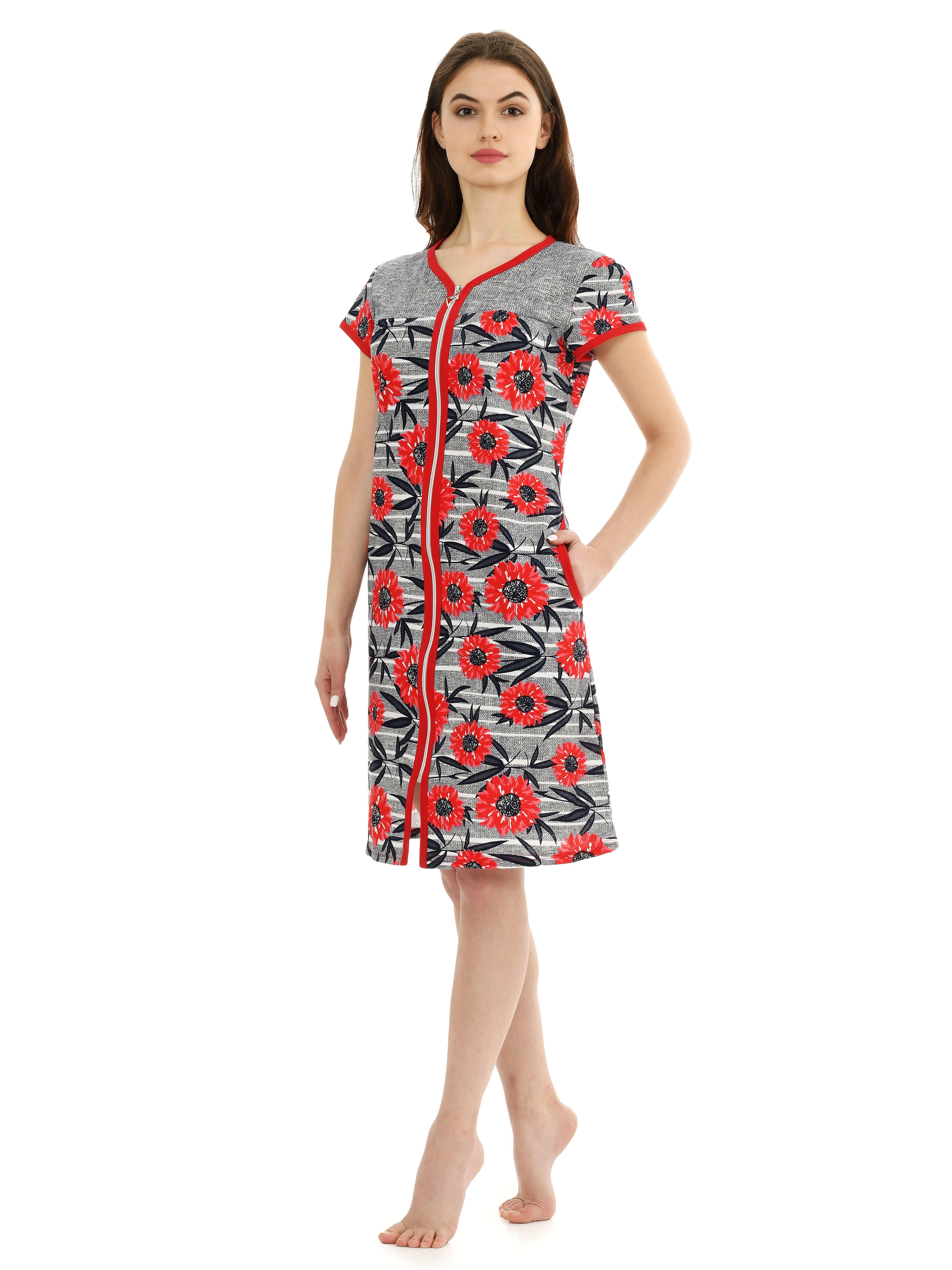 Пестрый рисунок, короткий рукав, удобные карманы, застежка на молнии и хлопковая ткань делает это халат идеальным вариантом домашней одежды. При производстве используются только качественные материалы, пошив ведется на современном оборудовании, все швы ровные и аккуратно обработаны, благодаря чему изделие будет носиться очень долго. Рост модели на фото - 170 см. При стирке соблюдайте условия по уходу - температура воды не более 40 градусов, не сушить в сушильном барабане.
