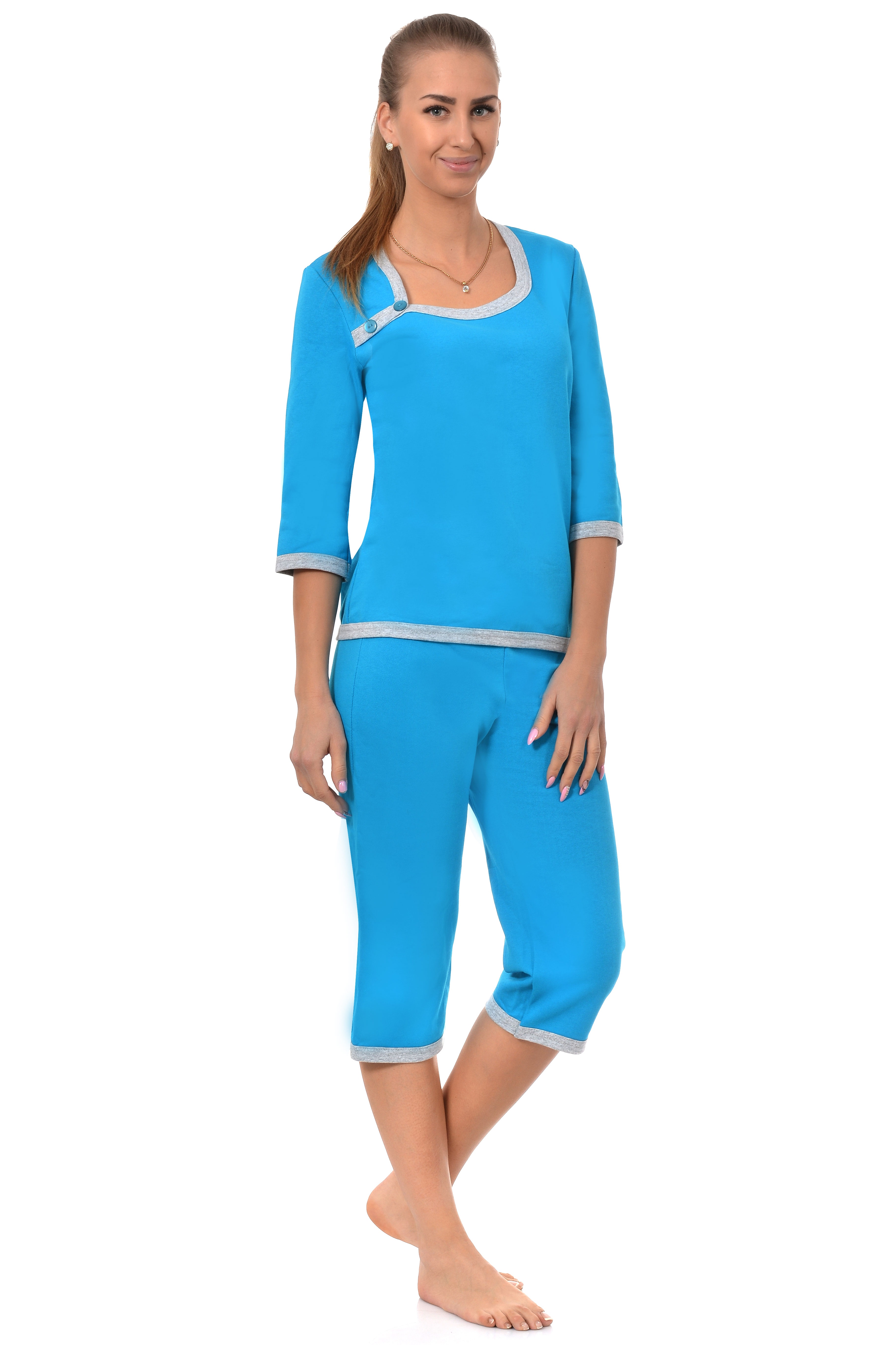 Футеровая пижама от торговой марки "Slaff". Теплая, удобная, хороший пошив. В ней будет очень комфортно спать, поможет получить максимальное расслабление и комфорт. В комплект входят бриджи и кофта с рукавами 1/2. .При производстве используются только качественные материалы, пошив ведется на современном оборудовании, все швы ровные и аккуратно обработаны, благодаря чему изделие будет носиться очень долго.