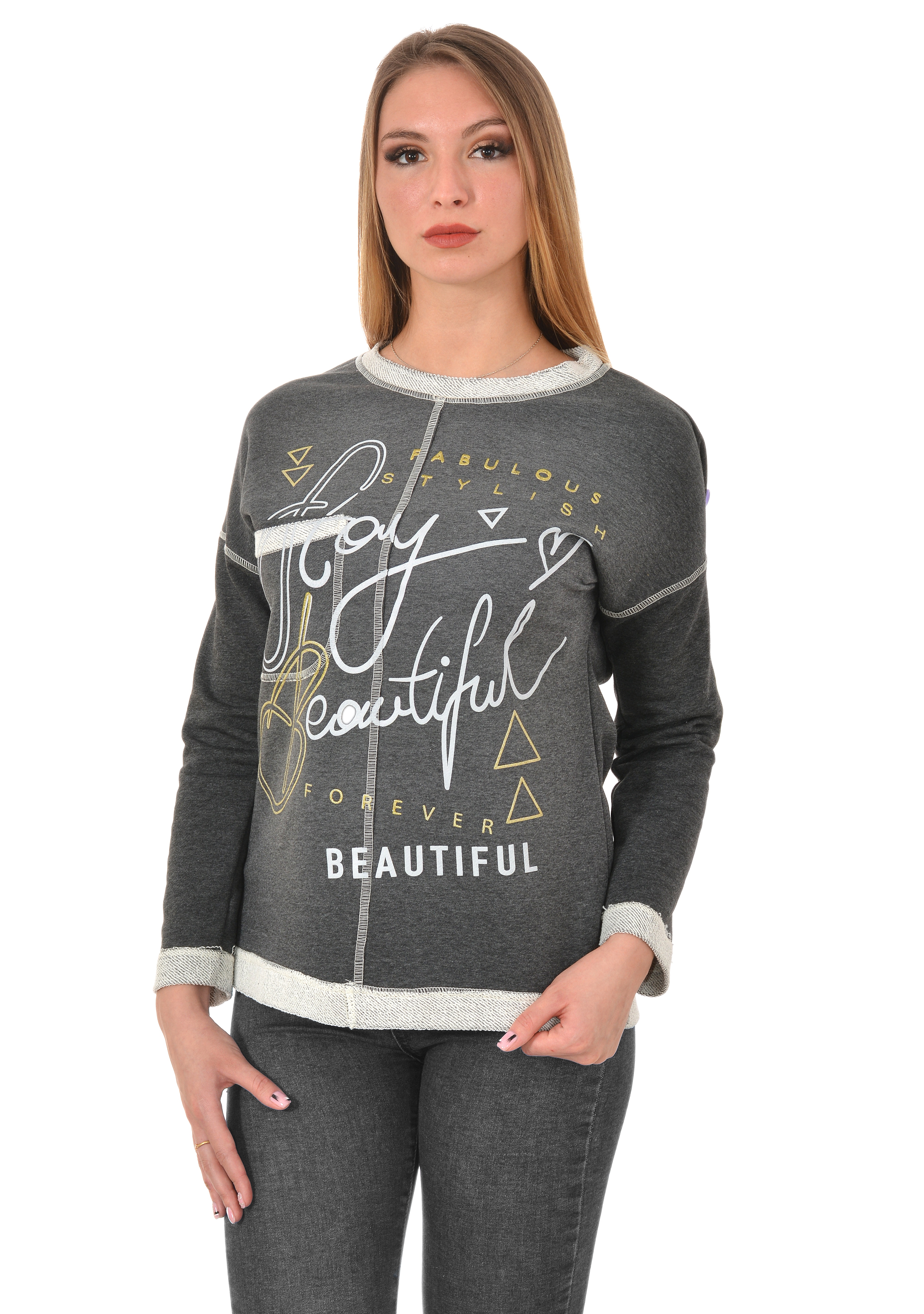 Стильный свитшот от торговой марки Slaff. Рисунок с инострнными надписями добавит изюминку в Ваш образ. Теплая повседневная толстовка из футера прекрасно впишется в повседневны ритм осенних и зимних дней. Эта модель - одна из тех недорогих кофт, которые отлично подходят к джинсам, спортивным брюкам, и даже к некоторым юбкам! Прямой удобный крой, высококачественный материал, стильный рисунок - все это сочетает в себе одно изделие. Вырез горловины, рукава и низ изделия имеют контрастную окантовку, которая хорошо дополняет и завершает лаконичный образ.