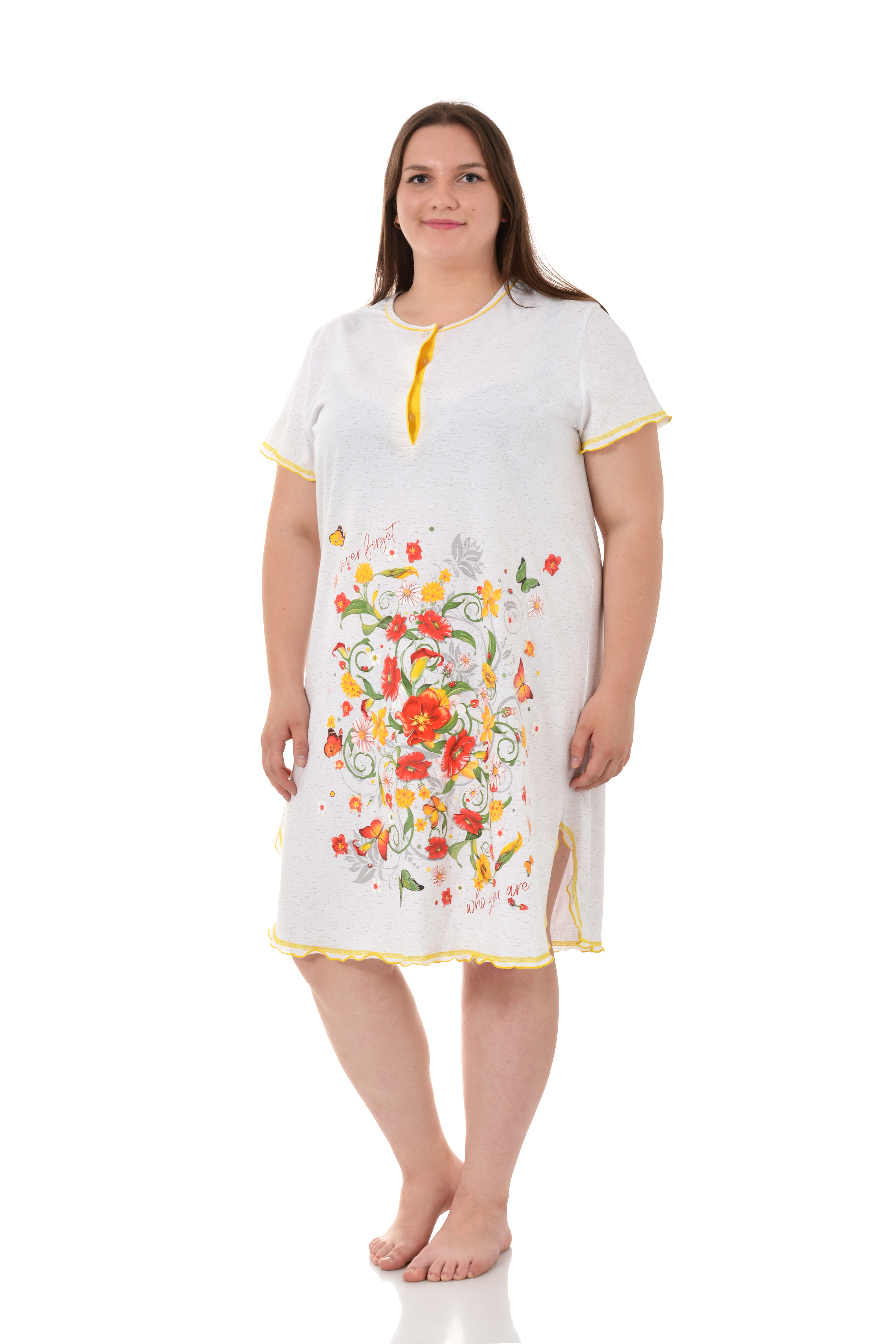 Очаровательная ночная сорочка с цветочным рисунком позволит быть неотразимой даже дома. Сорочка максимально комфортна благодаря свободному и простому крою. Она приятна к телу, не вызывает раздражения и аллергии, не стесняет движений и не давит во время сна. В такой сорочке будут сниться только самые приятные сны!