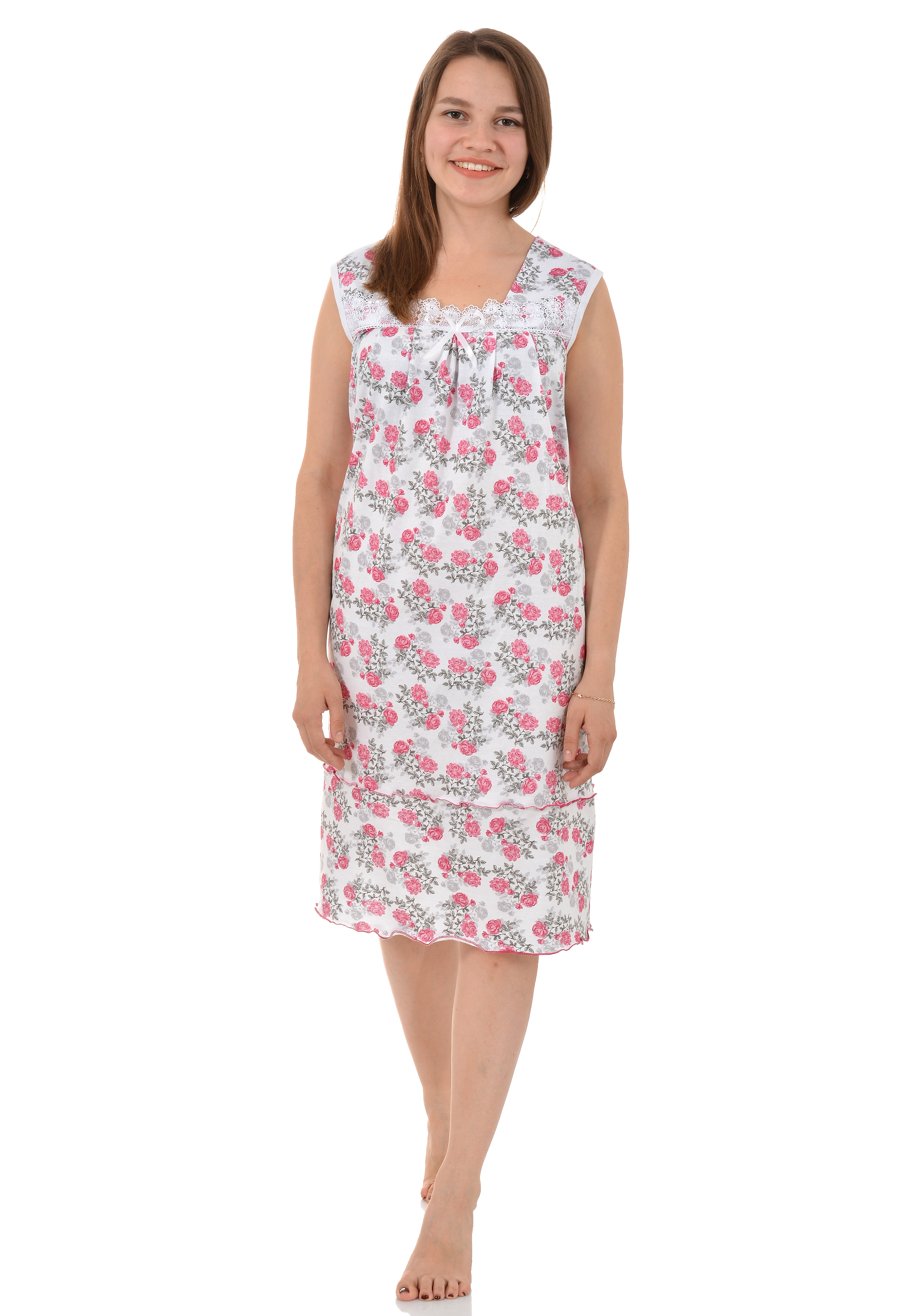 Женская сорочка - тот самый вид одежды, который может быть очень красивым и настолько же удобным! Оставайтесь чувственной, при этом выгодно подчеркивая все свои достоинства. Свежий, нежный и элегантный белый цвет с милым рисунком способен подчеркнуть вашу естественную красоту в выгодном свете.
