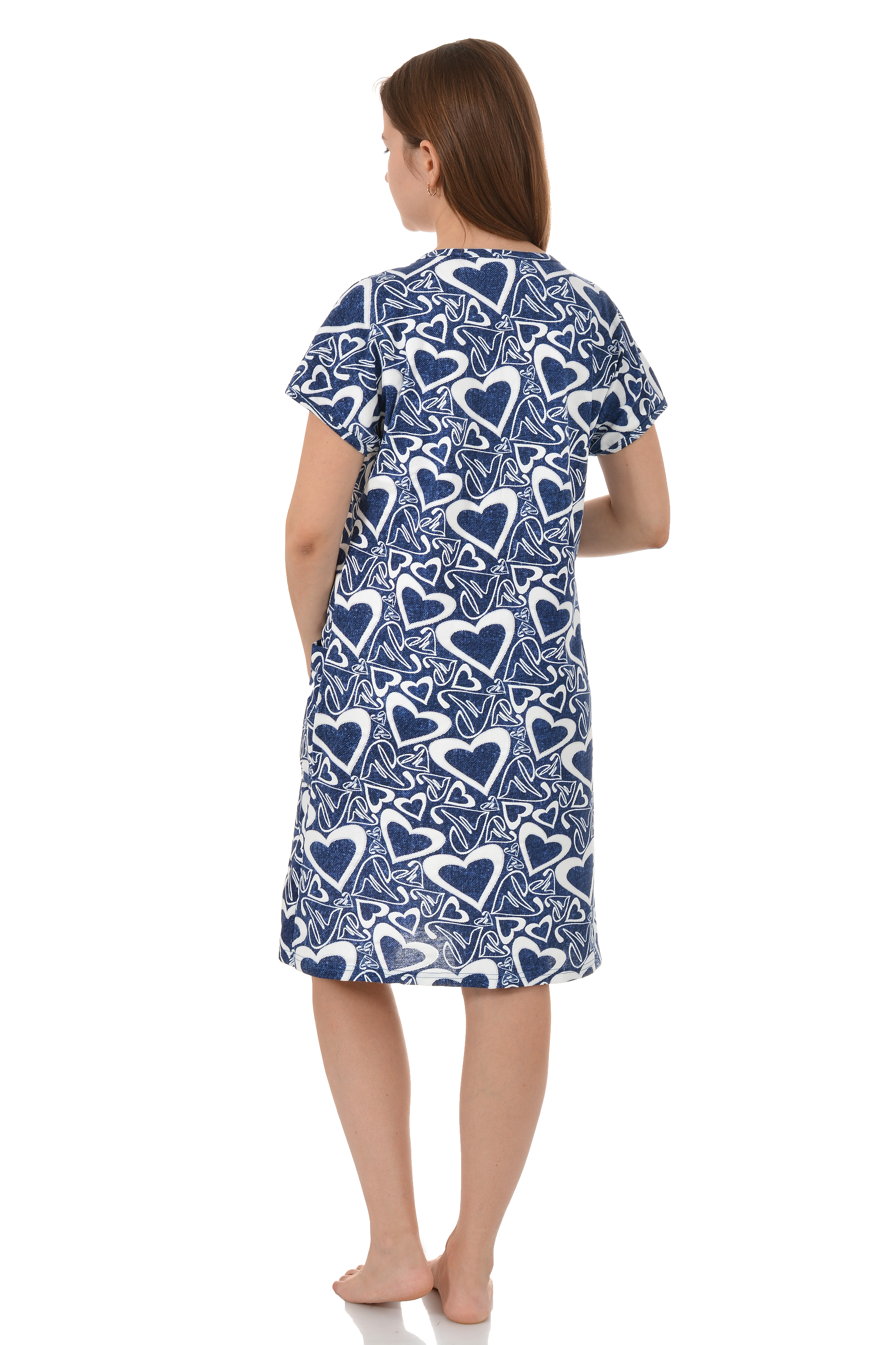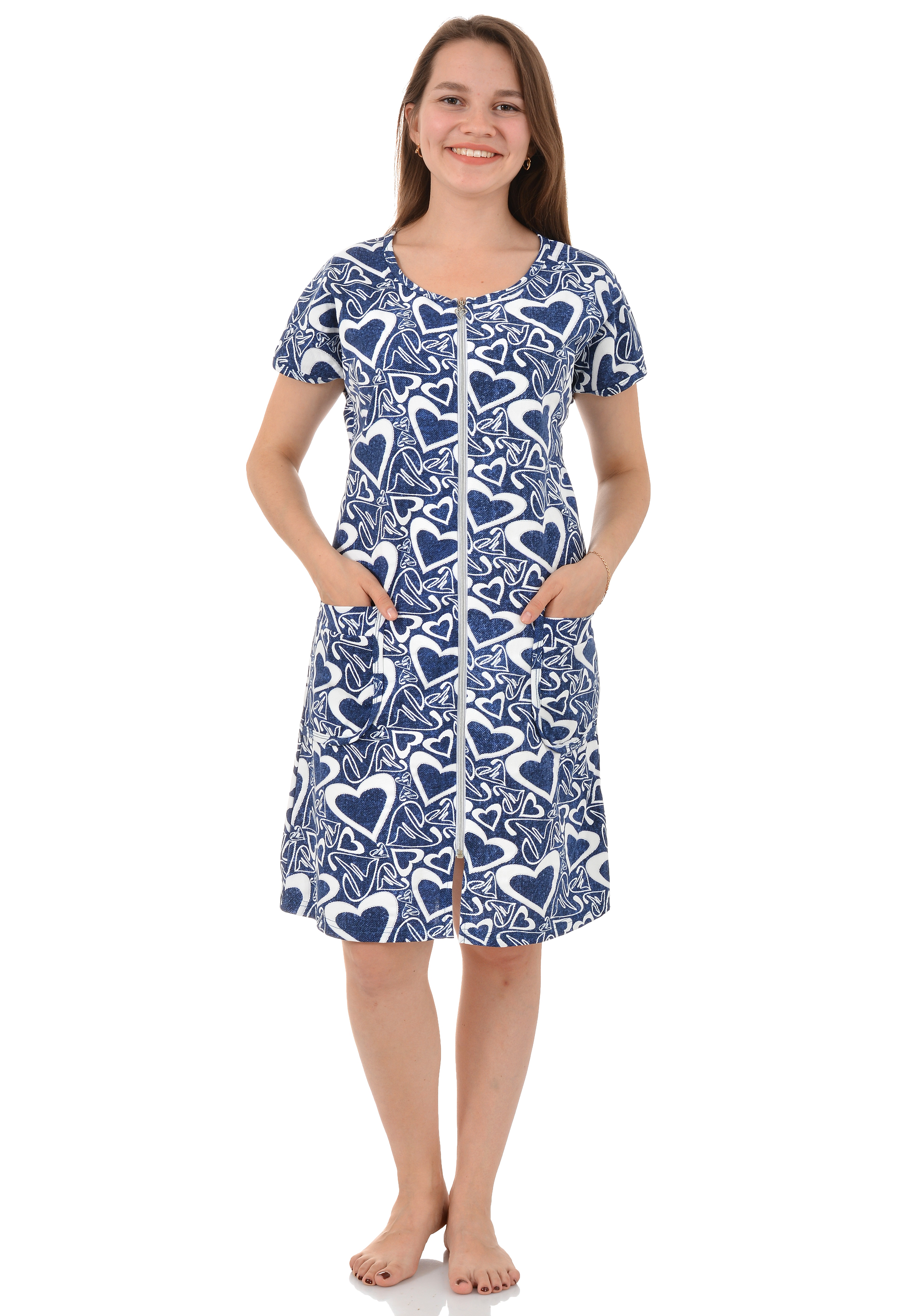 Короткий рукав, контрастная окантовка горловины и боковых карманов, застежка на молнии, оптимальная длина до колен.