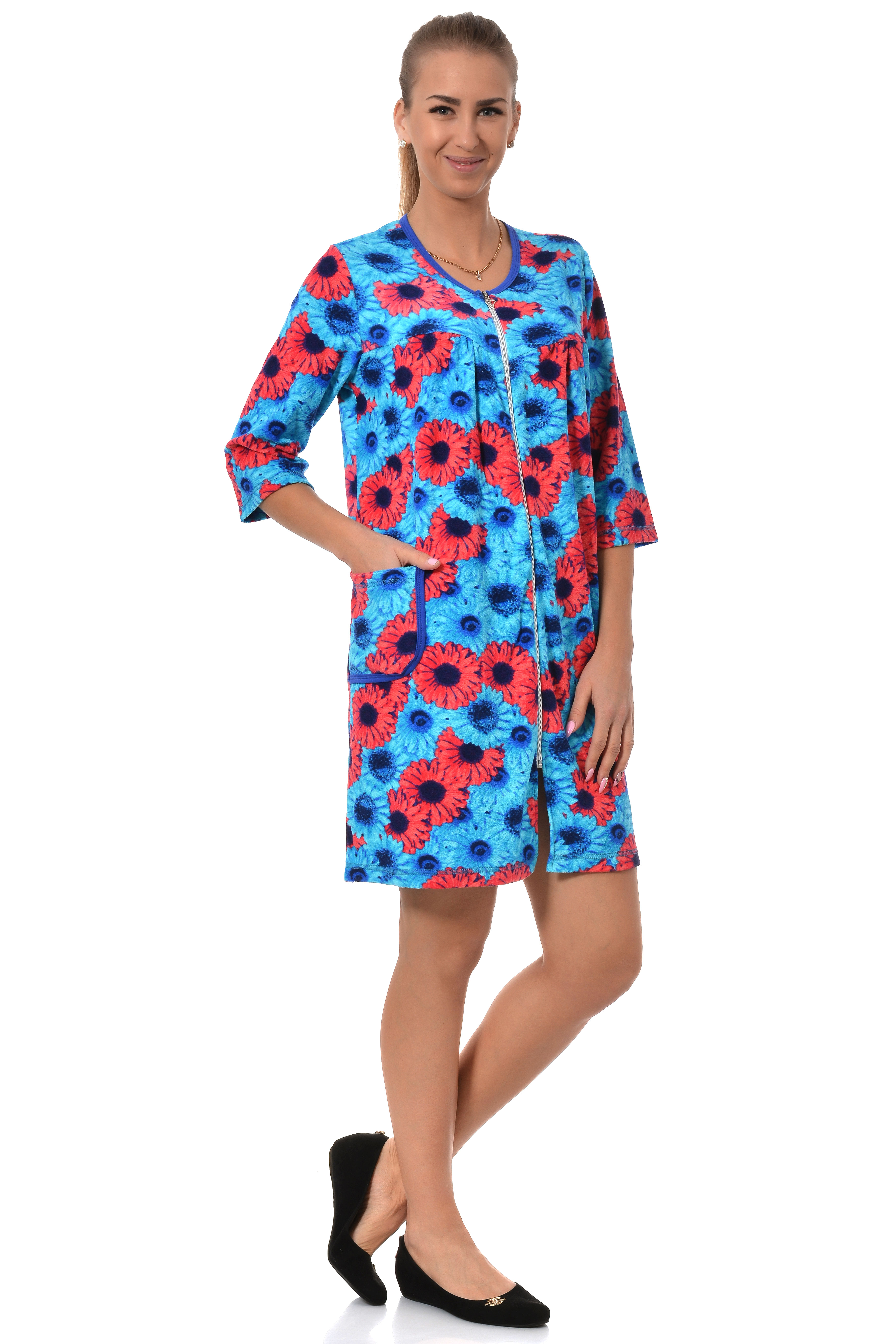 Яркий махровый домашний халат арт. 3279 полуприлегающего силуэта. Цветочный узор подчеркнет Вашу женственность и нежность